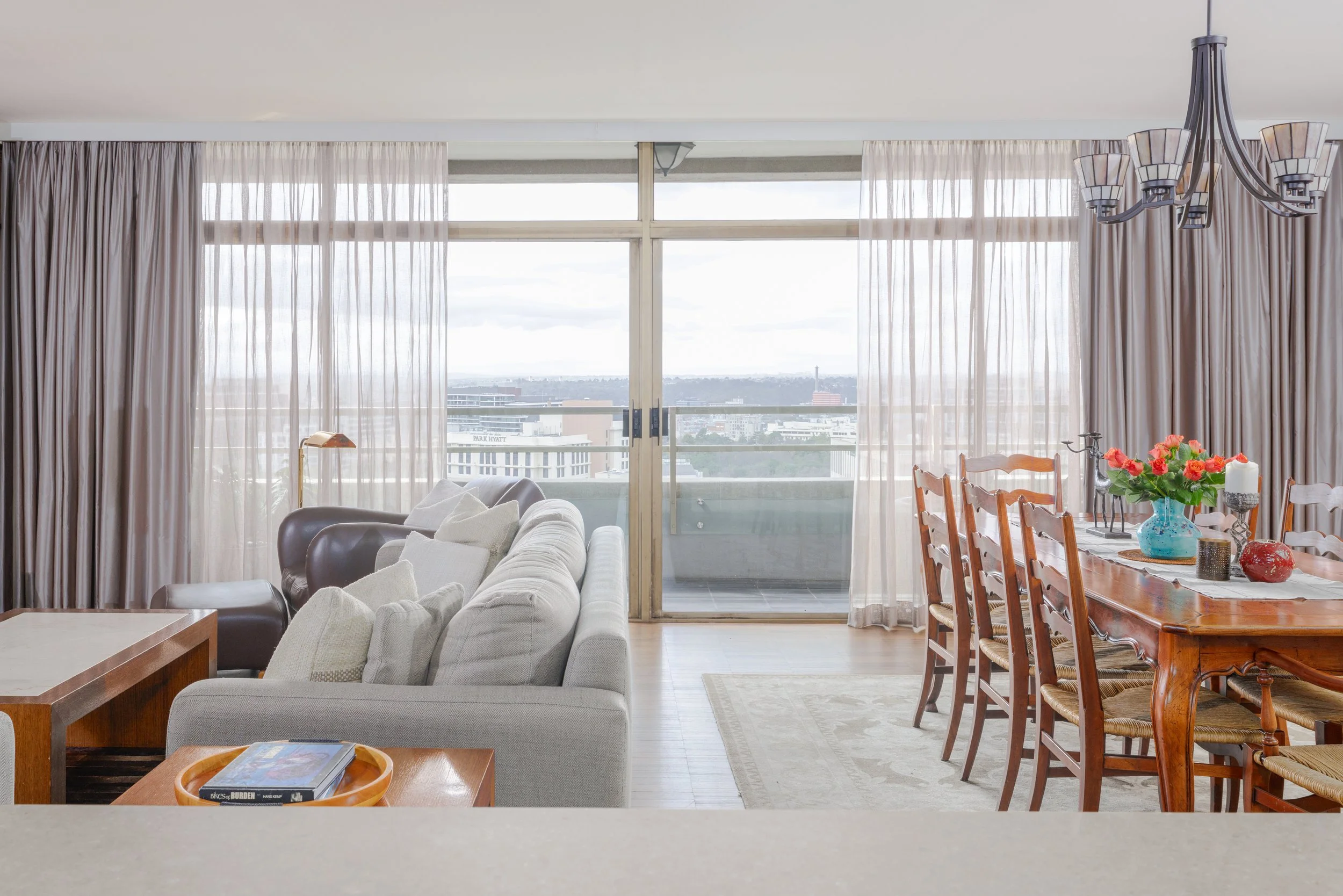 For this project, the brief was wonderfully clear: “I want exactly what I had before - just new.” The client’s original sheers and curtains had started to disintegrate after years of use, due to a fabric that couldn’t handle the elements. But she loved them - the volume, the texture, the soft sheen.